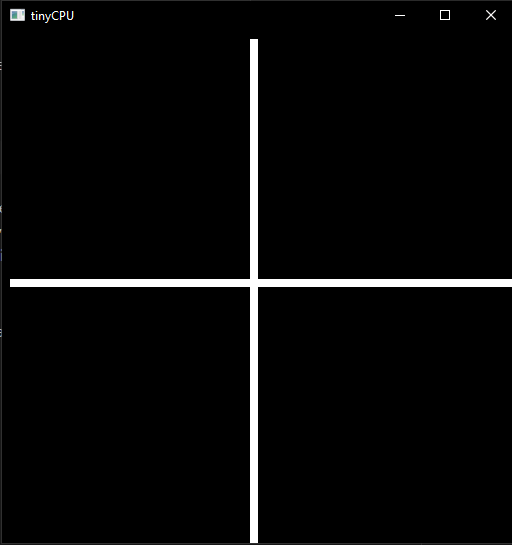 The CPU includes a 64 × 64 monochrome framebuffer. Each pixel is either on (1) or off (0). The framebuffer is separate from the 256-byte memory, it cannot be read or written through LD/ST instructions; it is accessible only via DRAW, DRAWOFF, and CLEAR.